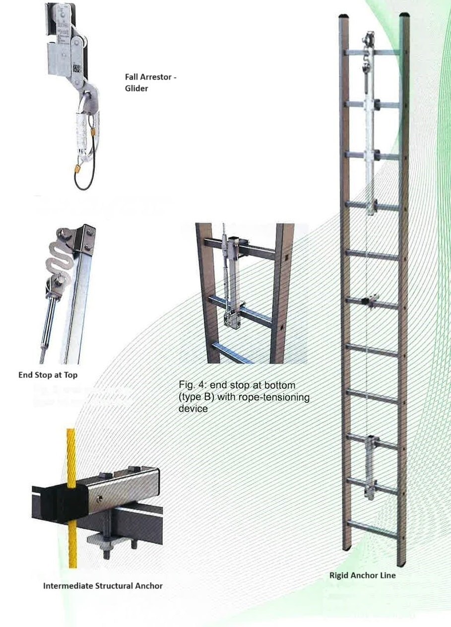 • Intermediate Structural Anchors: These fasteners are a vital element for the system’s structural integrity. They securely attach the rigid line to the fixed structure at regular, prescribed intervals. This systematic attachment ensures that the immense forces generated during a fall are effectively distributed across the entire ladder or structure, maintaining system stability and integrity even under high dynamic load.